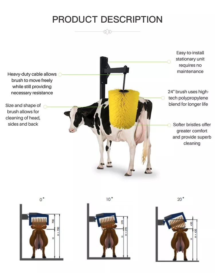 2.Reguliuojami 0°/10°/20° kampai tinka įvairaus dydžio gyvuliams ir leidžia išvalyti galvą, šonus ir nugarą.