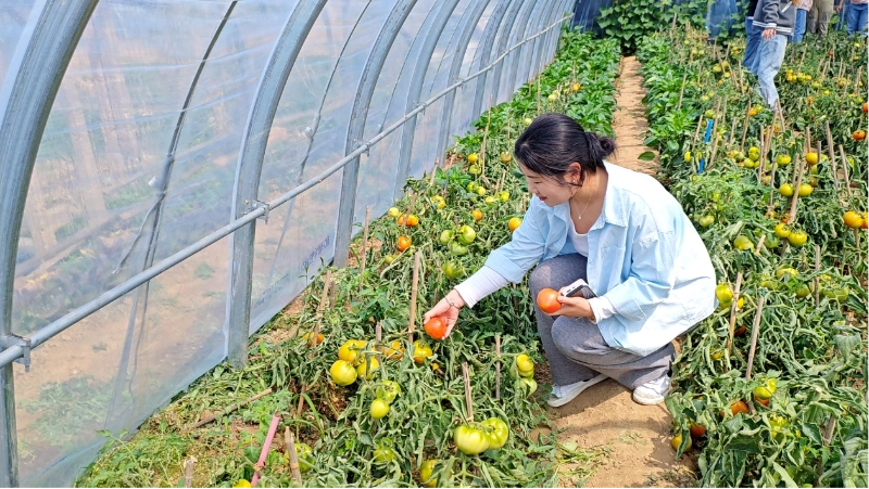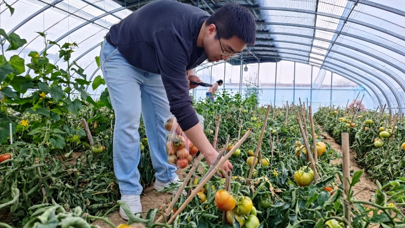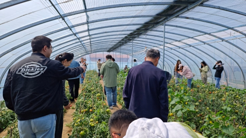 Po aistros buvo patogus laikas. 10.30 val. kartu nuvykome į Xiazhuang pomidorų skynimo sodą, kad pradėtume intymų susitikimą su gamta. Buvo giedra diena, o laukuose švietė saulė. Žalios šakos ir lapai buvo padengti ryškiai raudonais 69 Pomidorais, kurie buvo apvalūs ir putlūs, ryškios spalvos, todėl žmonėms seilė tekėjo iš tolo.