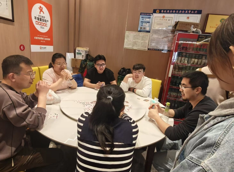 Vidurdienį trumpai pailsėję, 12.30 val., persikėlėme į viešbutį ir pradėjome įdomias Guandan varžybas. Būdamas visų mėgstamas komandos formavimo projektas, Guandanas ne tik išbando asmeninį loginį mąstymą, bet ir daugiau dėmesio skiria tyliam partnerių bendradarbiavimui – „Gera korta nekonkuruoja akimirkai, o partnerio tylus supratimas yra svarbesnis už asmeninį herojiškumą“, būtent tai ir yra Guandano komandos formavimo reikšmė.